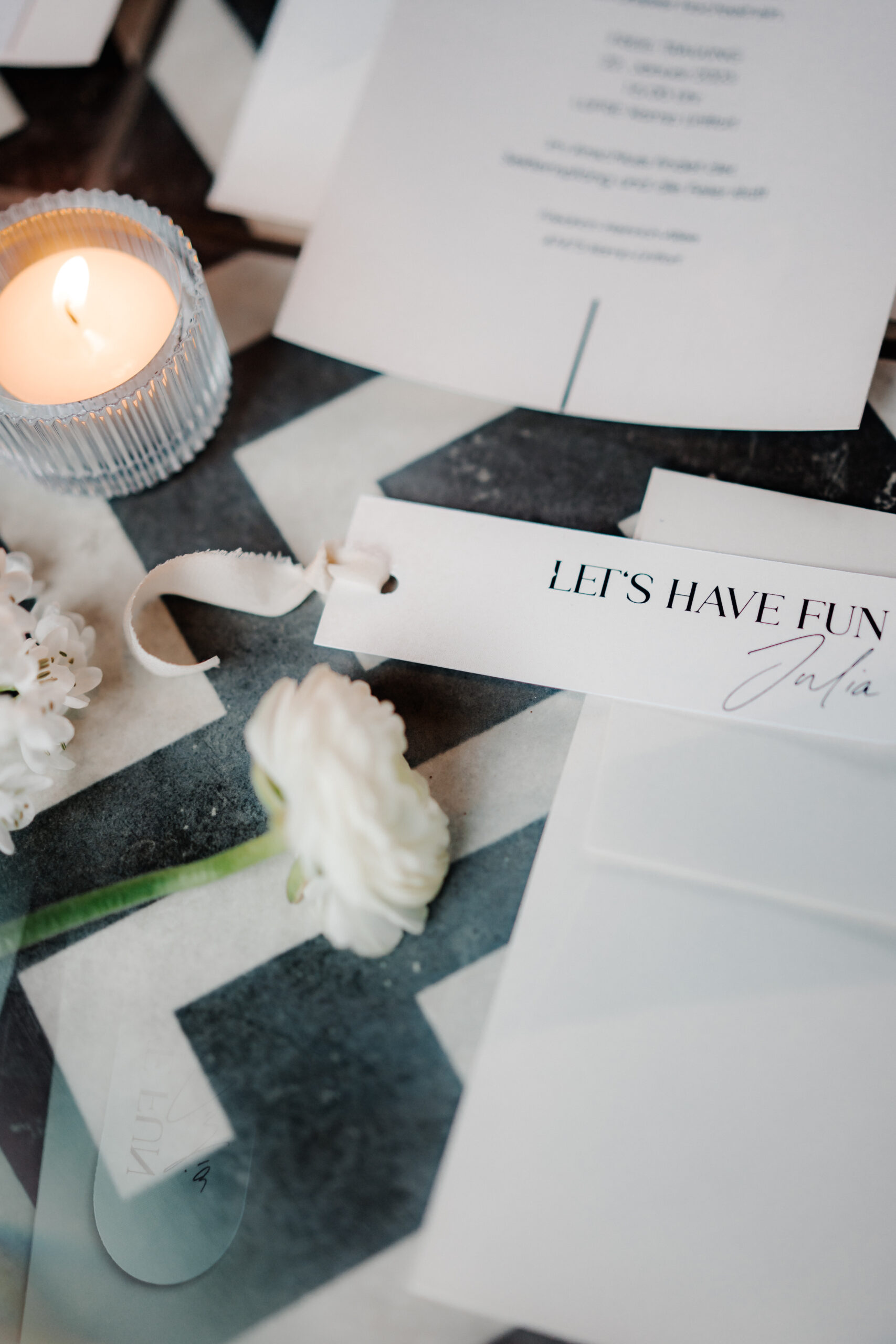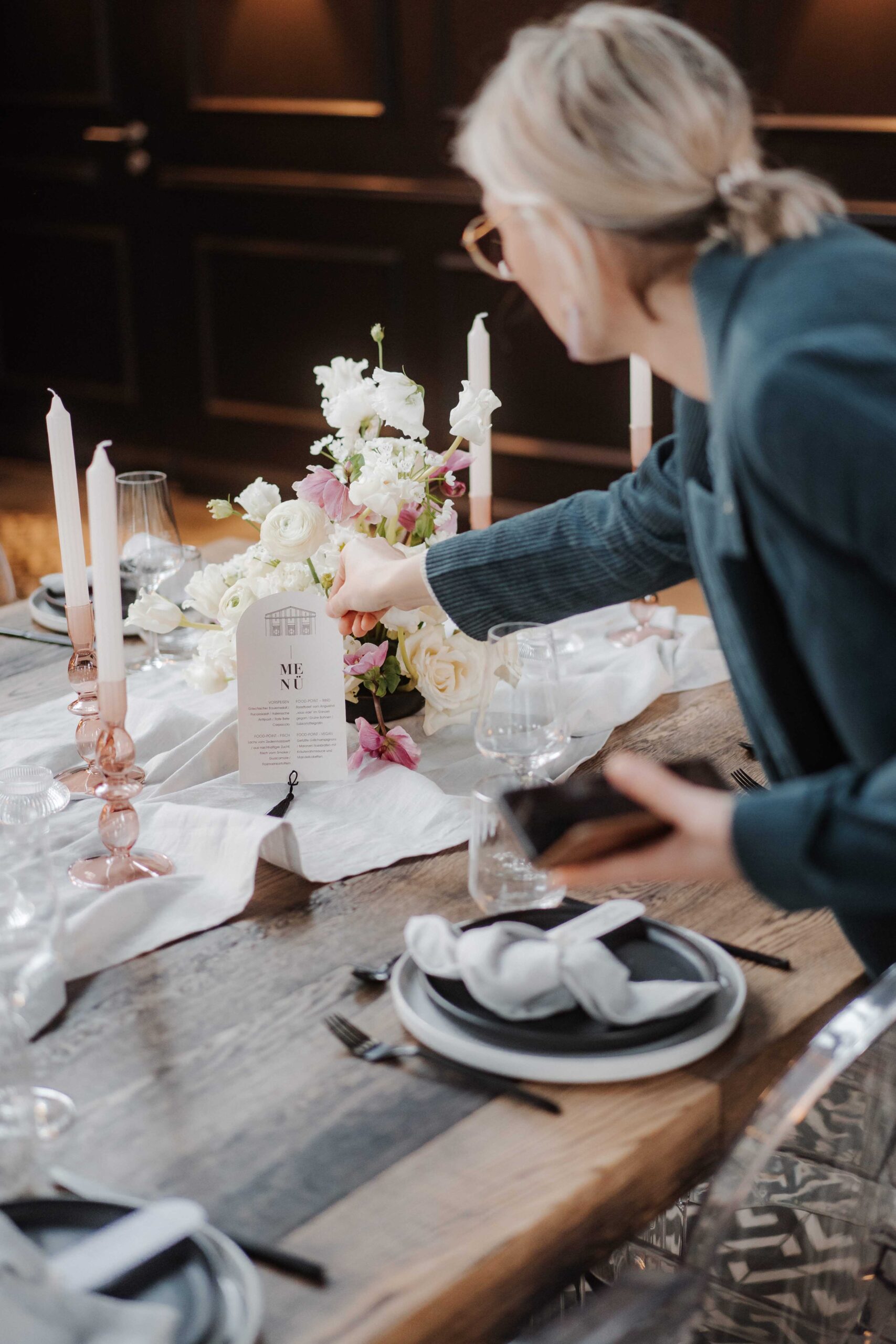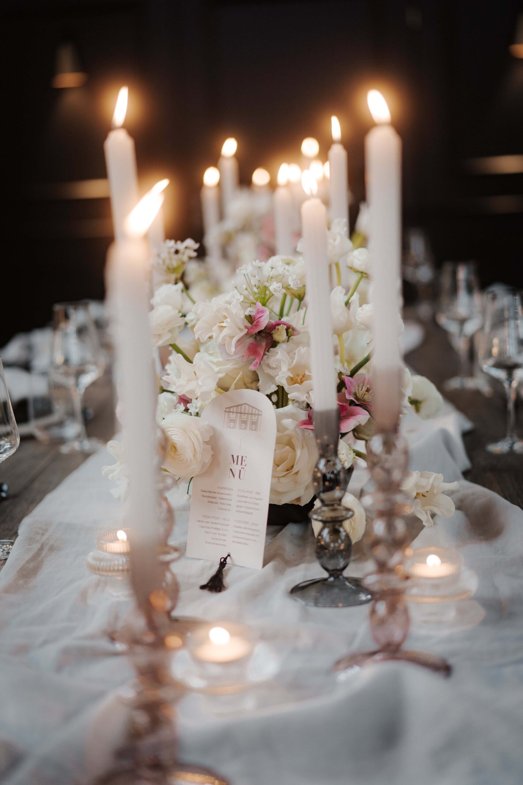 Neben Farben, Blumen und Materialien spielen auch persönliche Details eine große Rolle. Kleine Akzente wie individuell gestaltete Platzkarten, Menütafeln mit euren Namen oder Fotos aus eurer Beziehung verleihen der Tischdekoration eine persönliche Note. Auch Kerzen, Laternen oder Lichterketten sorgen für stimmungsvolles Licht und machen jeden Tisch zu einem echten Hingucker.