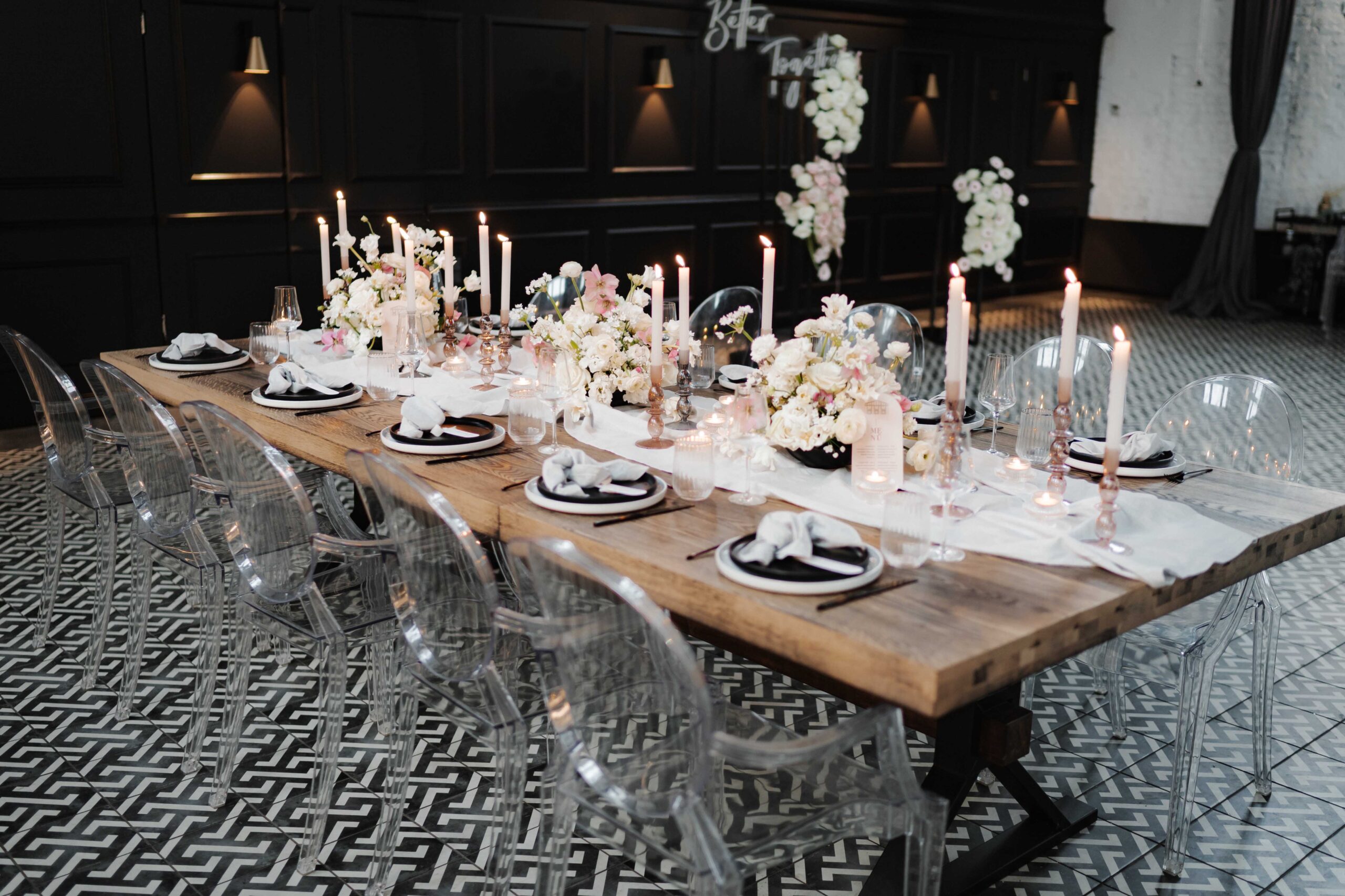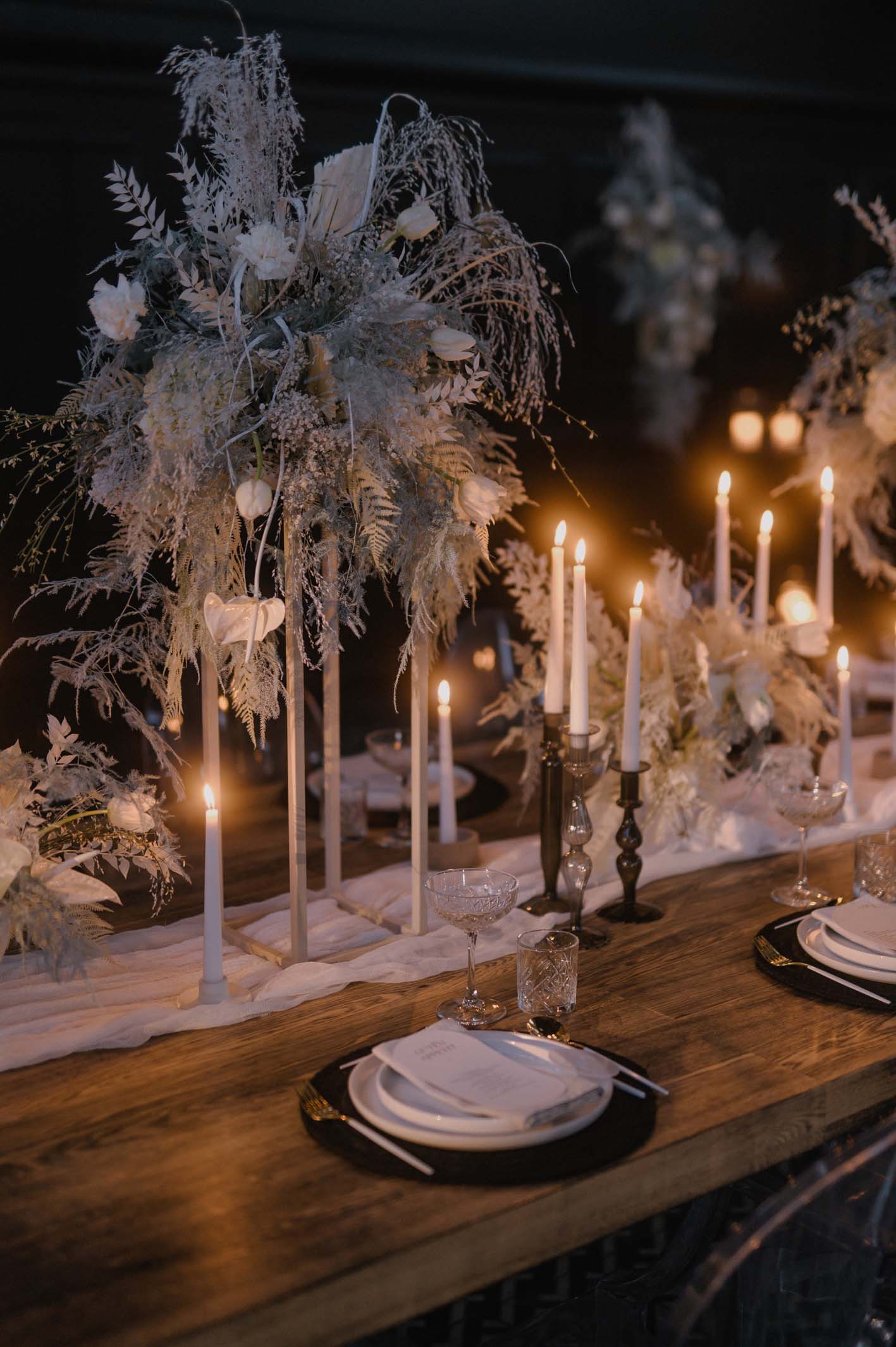 Diese Hochzeit setzt auf schlichte Eleganz, klare Linien und dezente mystische Elemente: